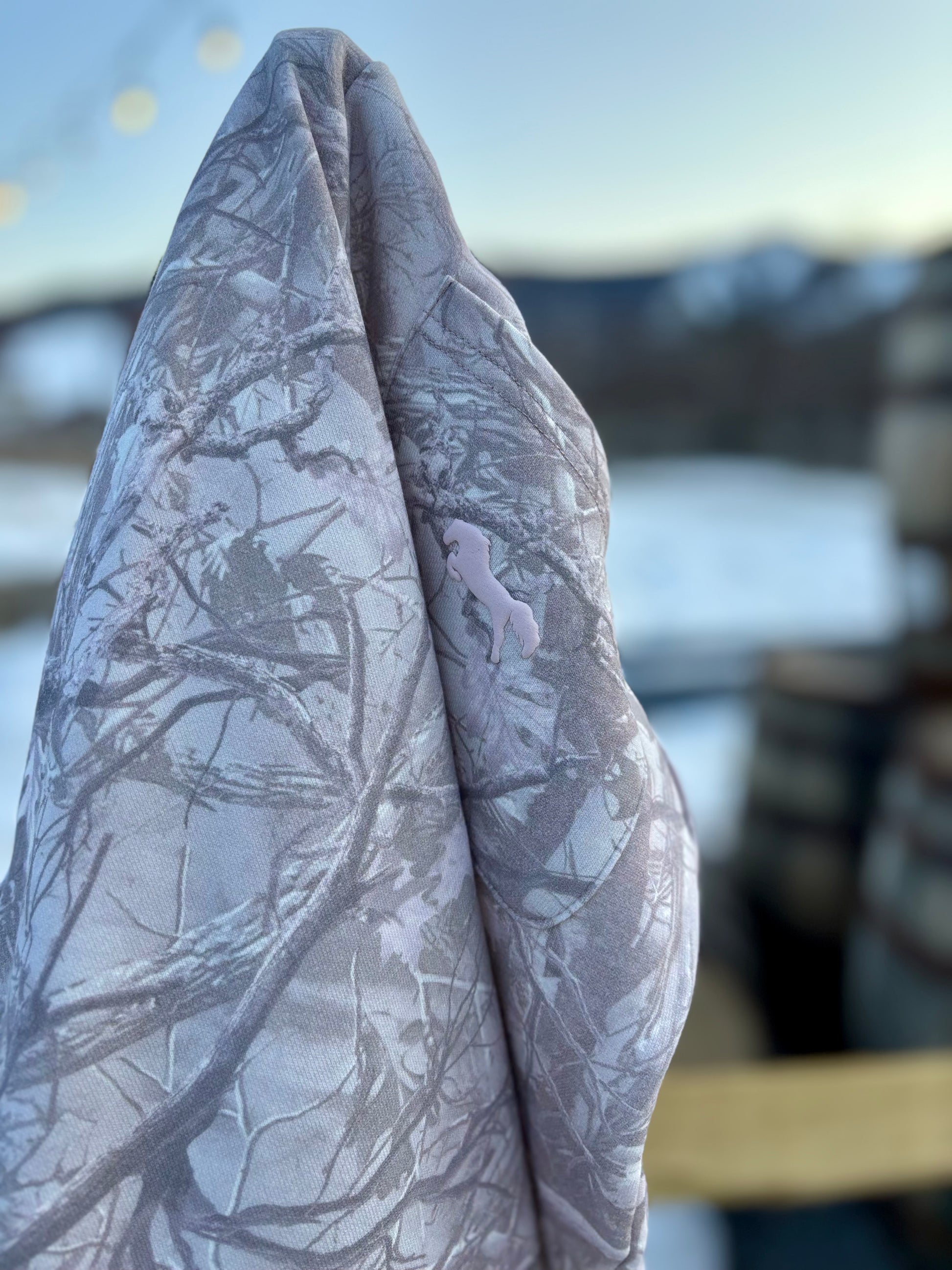 Aspen Camo Sweatpants - With pink puff print horse logo on the back pocket