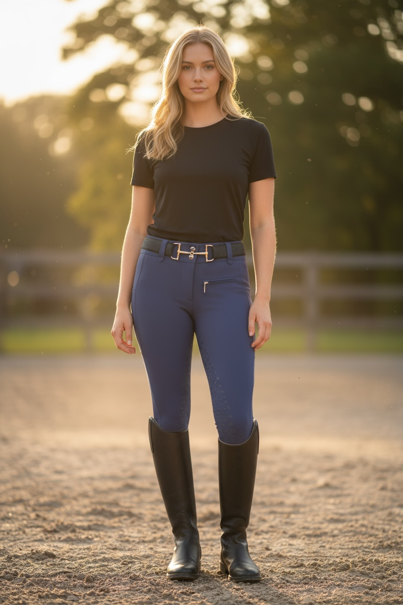 High-performance breeches with full-seat silicone grip for stability in the saddle. Two side pockets store your phone or essentials, and feature the signature logo in silicone. A zipper and hook and eye closure ensure a secure fit.